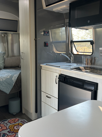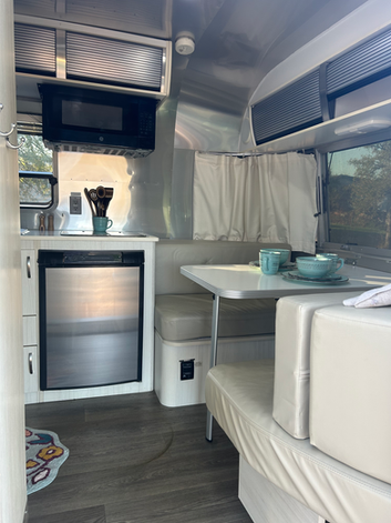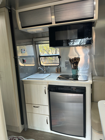 Perfect for couples, solo travelers, or first-time Airstreamers, this Bambi is turnkey-ready — fully stocked with kitchen necessities, outdoor furniture, and essential gear so you can hit the road the day you tow it up.